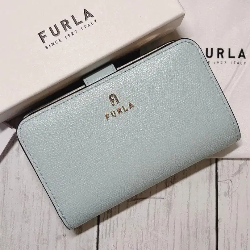 새상품 FURLA 한정 컬러 바빌론 M 접이식 지갑 민트 블루&베이지