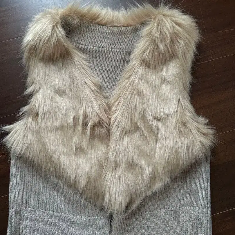 allureville 자카드 인조 모피 콤비 니트 베스트