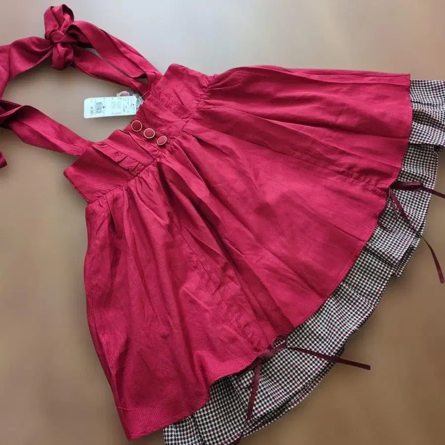 택 포함 미사용 엑시즈팜 빨간색 플레어 스커트 리본 스트랩 포함