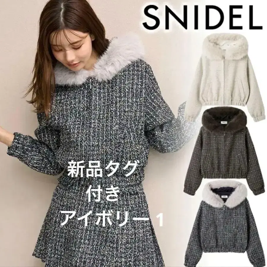 SNIDEL 스나이델 퍼 트리밍 트위드 블루종 2025 가을/겨울 신상