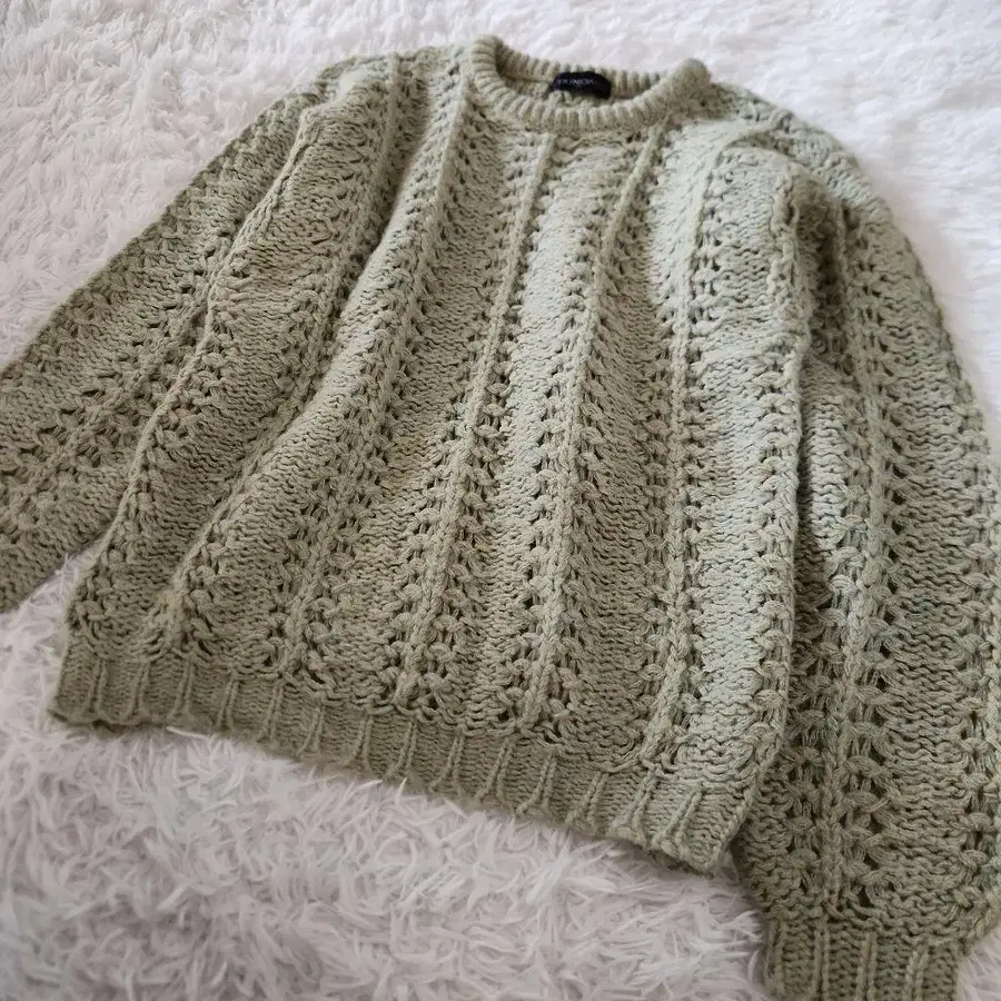 DUNDAS 니트 스웨터 그린 케이블 편직 LL XL 울