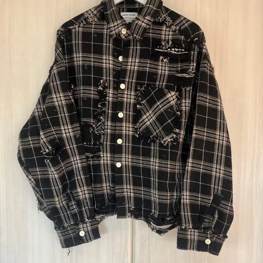 데미지 단기장 스터드 체크 플란넬 셔츠입니다.