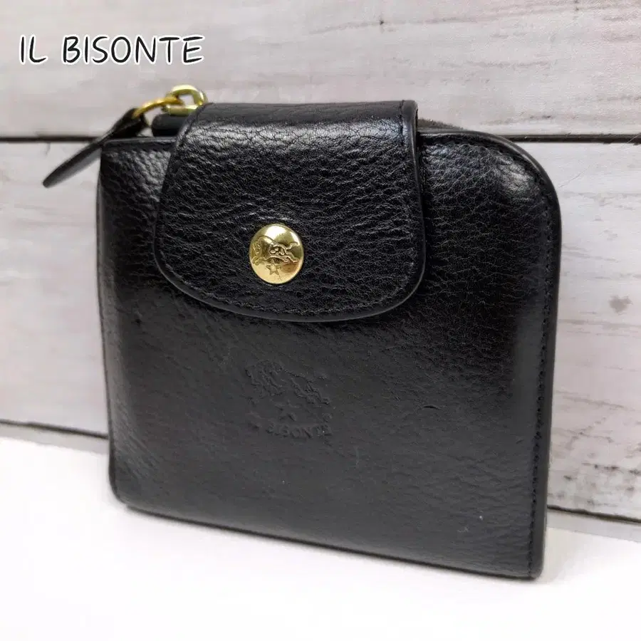 로고 엠보 골드 금장 장식 컴팩트 지갑 골드