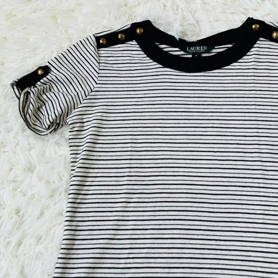 보더에 골드 버튼이 달린 멋진 T셔츠입니다.