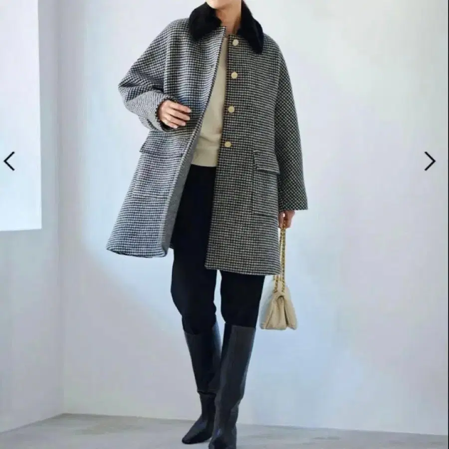 텐트 라인의 폼 코트는 소재를 풍부하게 사용한 밴드 포함 돌먼 슬리브 디자인. 케이프를 착용한 듯한 실루엣에 골드 버튼, 큰 플랩 포켓은 전통적인 분위기의 악센트가 됩니다. 기분 좋은 에코 퍼 옷깃은 탈부착 가능한 디자인. 크루넥 코트로 입는 것도 추천하는 디자인입니다. 자켓이나 블루종을 입어도 안에 무엇이든 입을 수 있는 볼륨감이 있어 세련된 이번 시즌 하나쯤은 꼭 착용했으면 하는 추천 아이템입니다.