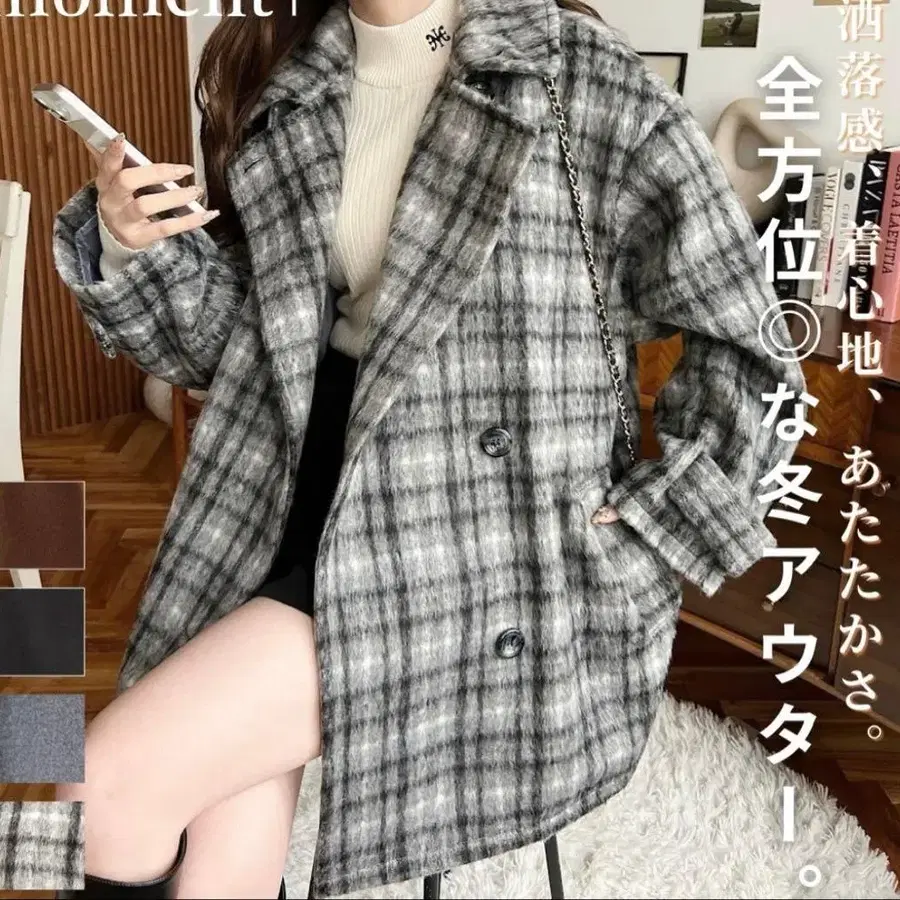 자동 번역되었어요. 원문보기moment+ 울 체크 더블 브레스트 P 코트 (그레이 체크)입니다. 사이드 포켓 있음!