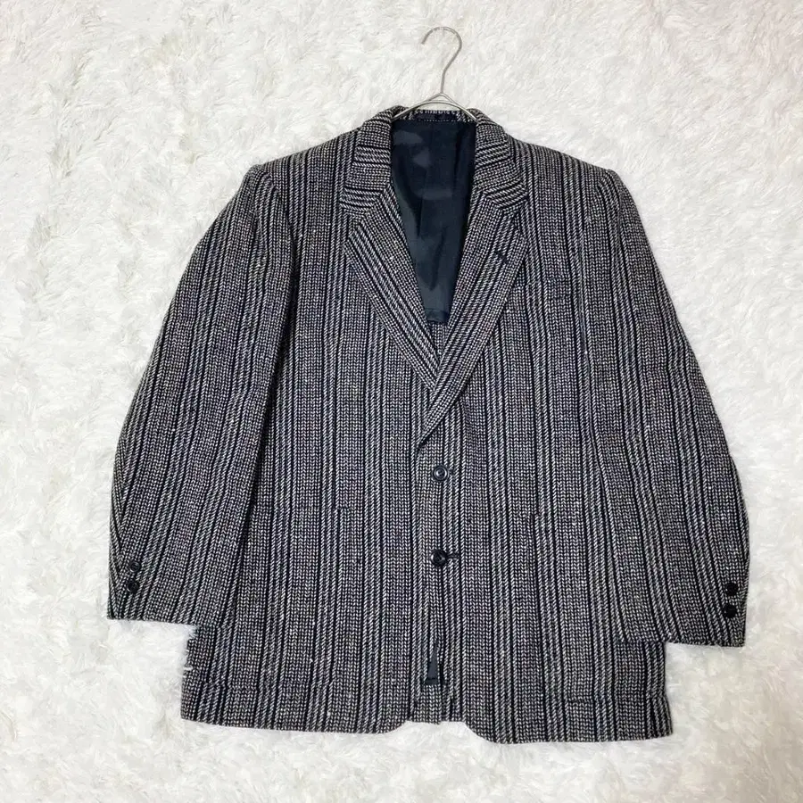 • 해리스 트위드 테일러드 자켓 올 패턴 헤링본 L 차콜 그레이