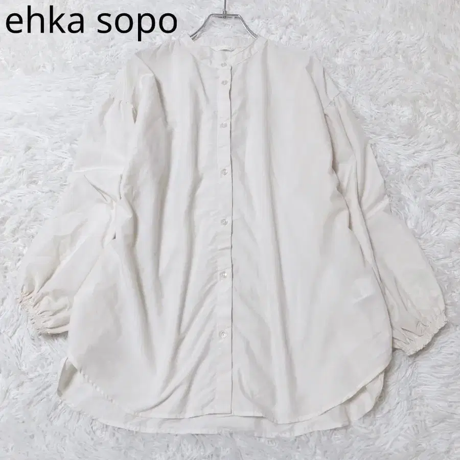 에카 소포 블라우스 노카라 베이지 소매 밴딩 개더 무지 캐주얼