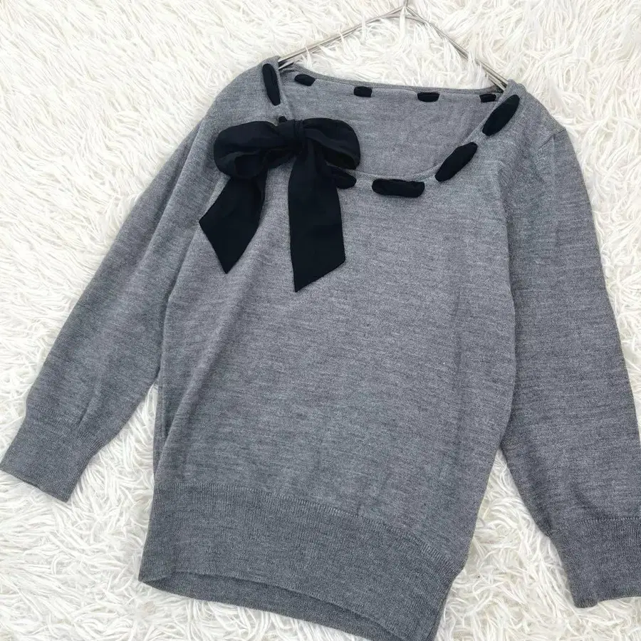 22 옥테이블 울 쉬폰 리본 포함 니트 풀오버 그레이 워셔블