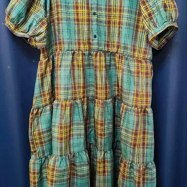 punyus 퍼프 슬리브 티어드 체크 원피스 사이즈 4 그린
