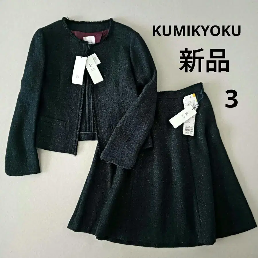 택 포함 새상품 쿠미쿄쿠 수트 셋업 라메 트위드 네이비 L