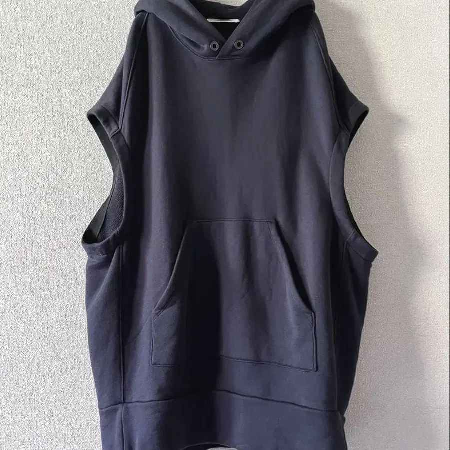 플레인피플 코튼 맨투맨 슬리브리스 후드티 네이비 루즈핏
