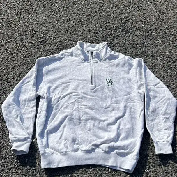 라이트 그레이 하프 지퍼 트레이닝복, 자수 로고가 있어 캐주얼한 스타일에 최적입니다. - 색상: 라이트 그레이 - 로고: 자수 로고 (NYB) - 스타일: 하프 지퍼 - 소재: 코튼 혼방 방문해 주셔서 감사합니다.