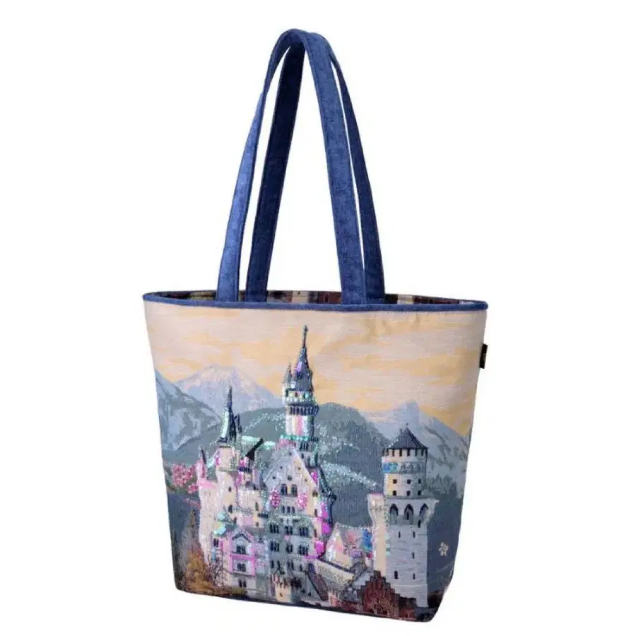 독일의 명성 높은 노이슈반슈타인 성을 모티브로 한 고블랑 직물에 비즈와 스팽글을 럭셔리하게 장식하여 빛의 입자가 춤추는 듯한 반짝임을 더했습니다.