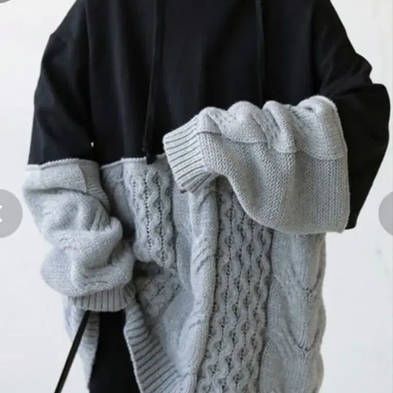 케이블 짜임의 아란 패턴과 후드티의 조합이 참신한 디자인.