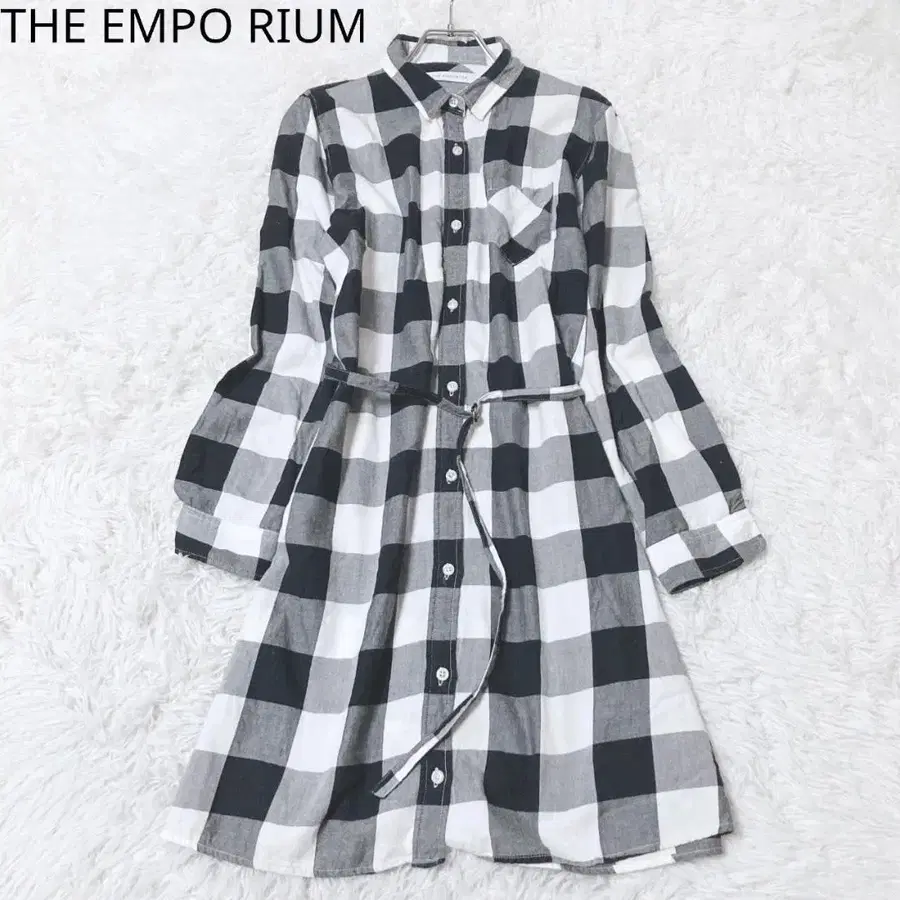 지엔포리움 셔츠 원피스 체크 무늬 블랙 L 벨트 포켓 포함