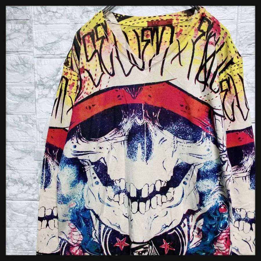 개성적인 스컬 그래픽 맨투맨 V넥 화려한 레어 사이즈 코튼 혼방