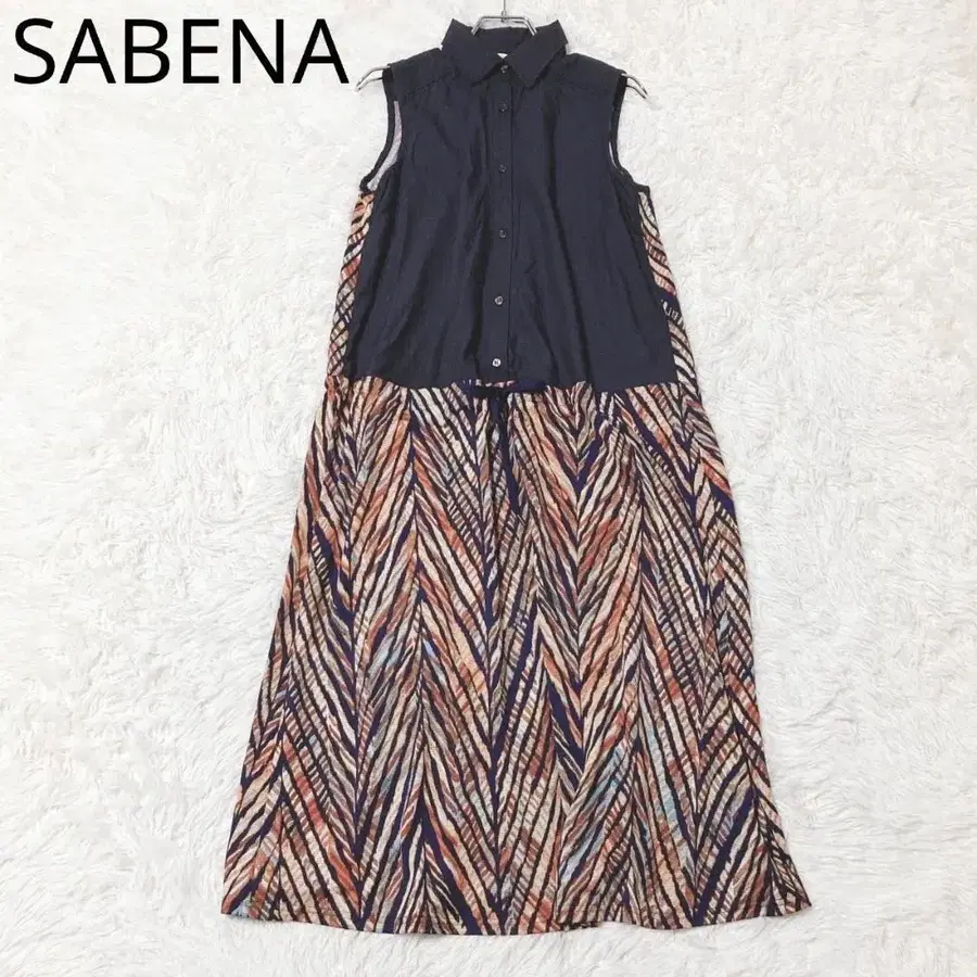사베나 셔츠 원피스 슬리브리스 롱 기장 네이비 디자인 절개