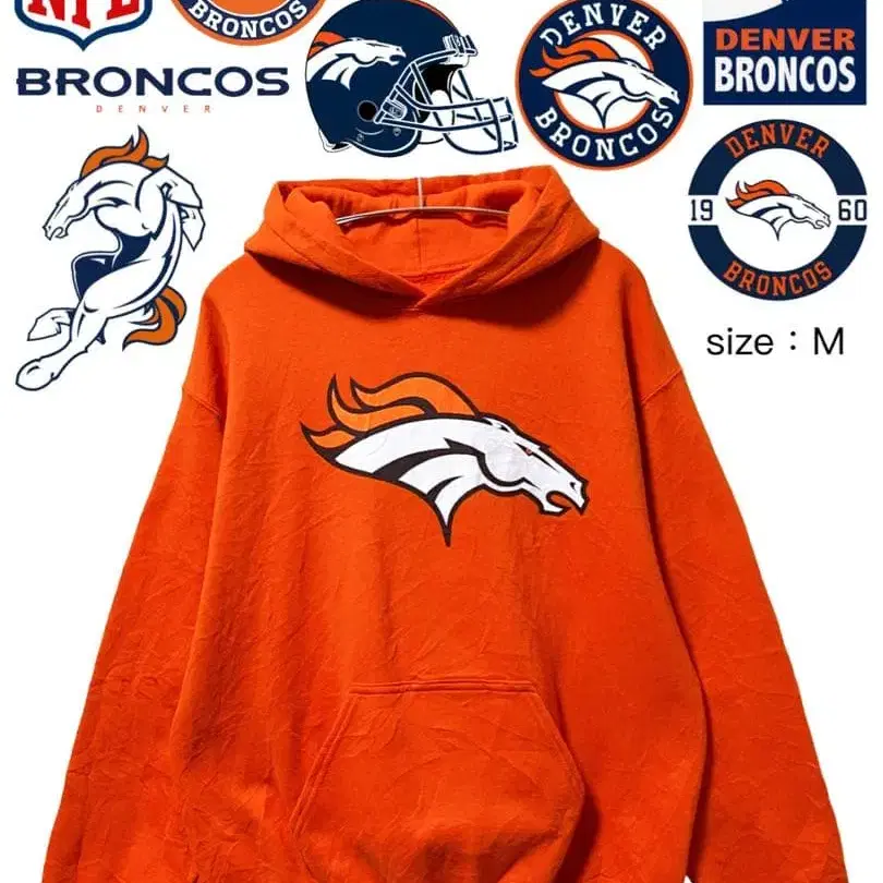 NFL 덴버 브롱코스 후드티 M 오렌지 USA 구제 의류