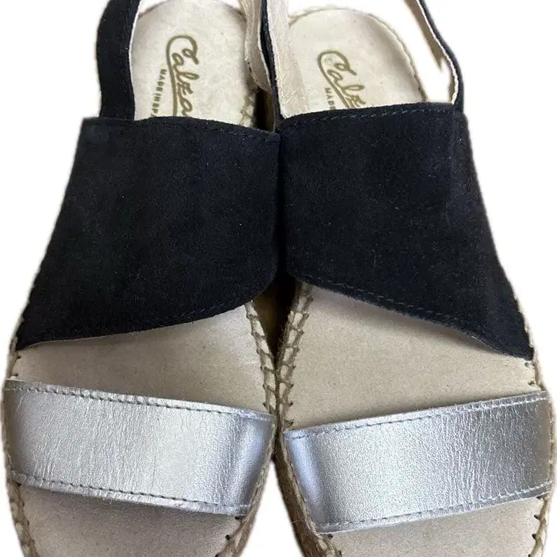 블랙과 실버 스웨이드 샌들, 쾌적한 착용감으로 캐주얼에 최적. - 색상: 블랙과 실버 - 소재: 스웨이드와 에스파드리유 밑창 - 디자인: 슬립온 스타일, 백 스트랩 포함 - 스타일: 캐주얼 - 용도: 평소 사용, 여름용 - 특징: 쾌적한 착용감, 스타일리시한 외관 방문해 주셔서 감사합니다.