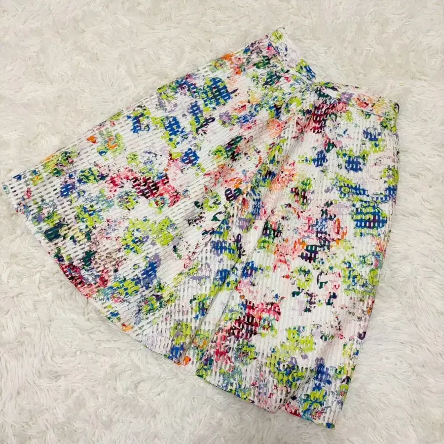 ◯ 특징: 입체감이 있는 메쉬 소재와 화려한 플라워 프린트가 시선을 사로잡는 주역급 스커트. 풍성한 A라인 실루엣으로 여성스러운 페미닌한 인상을 줍니다. 봄/여름 코디에 딱 맞는 아이템입니다.