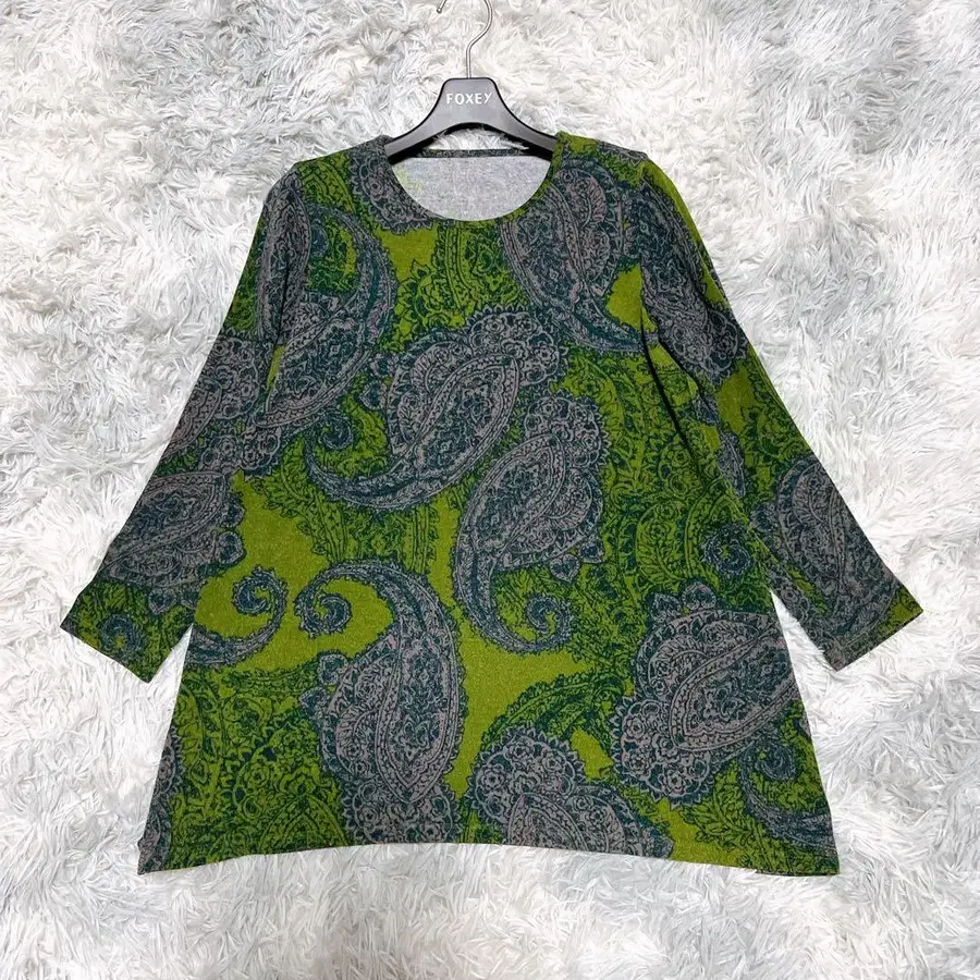 GEORGE RECH 36 긴팔 튜닉 페이즐리 올 패턴 그린 A라인