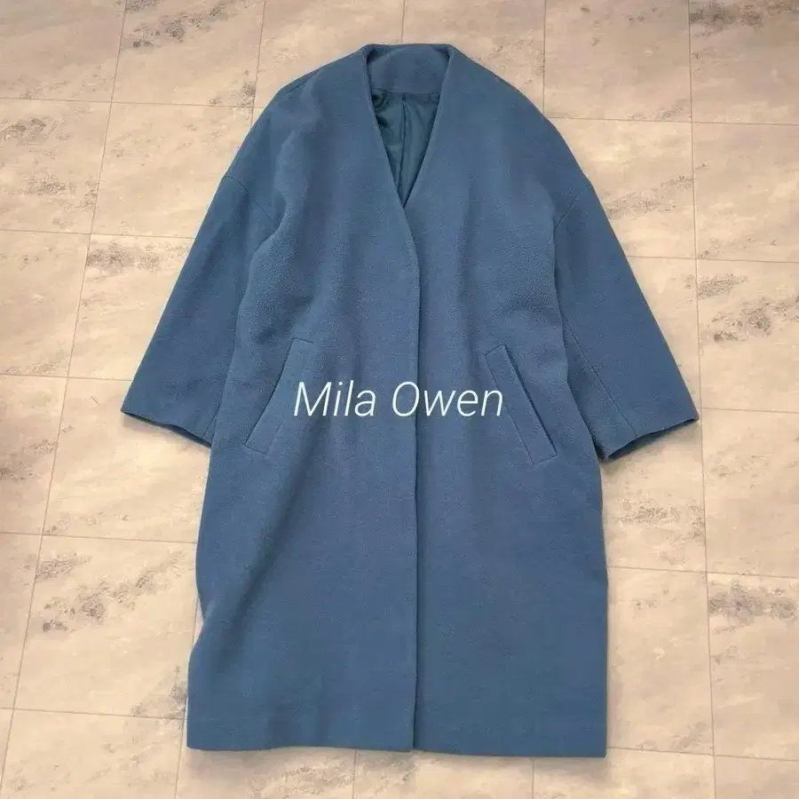 [ Mila Owen ] 미라 오웬 울 블렌드 노카라 코트 스카이블루