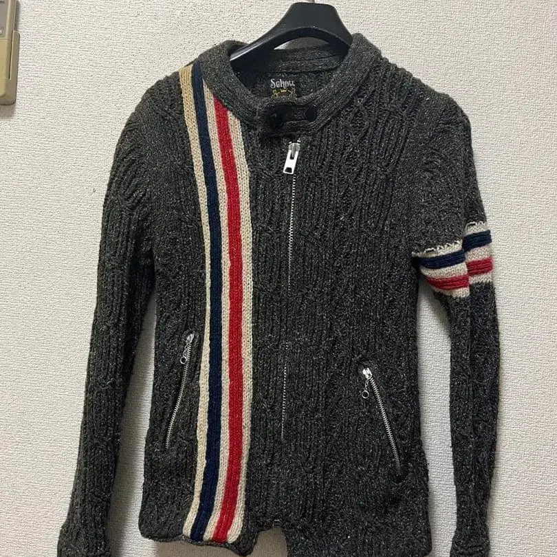 샷 아란 직조 니트 싱글 라이더스 /S 그레이 스트레치 라인