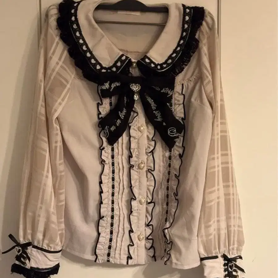 • MARS 마즈 레이스 절개 하트 버클 블라우스 화이트 블랙 긴팔