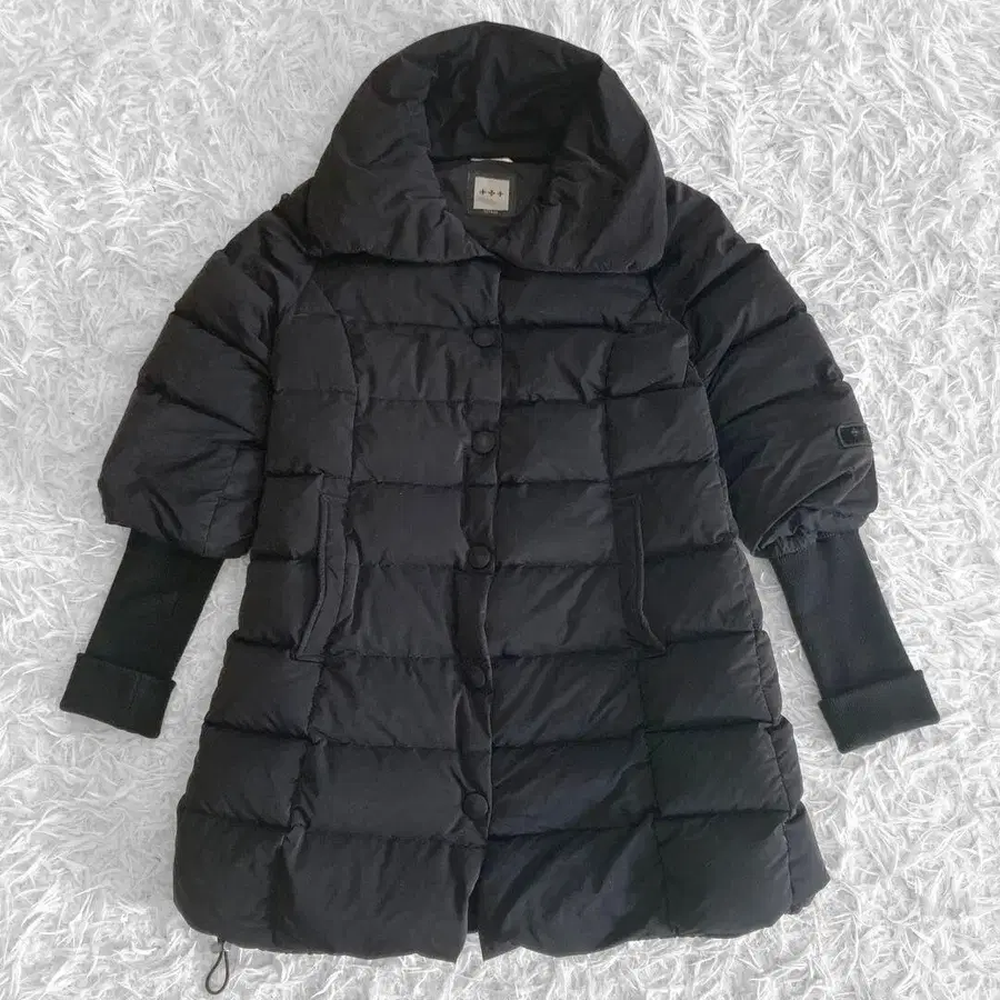 타트라스 가야 다운 코트 퍼프 슬리브 여배우 옷깃 레이어드 A라인 블랙 겨울 이소재 절개 LTA3J4A285 롱 리브 소매 와펜 로고