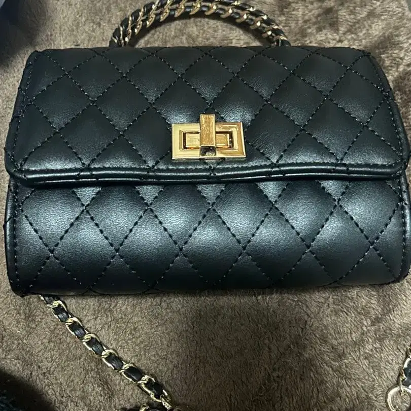 AULENTTI 숄더백 블랙 체인 핸들 퀼팅 백