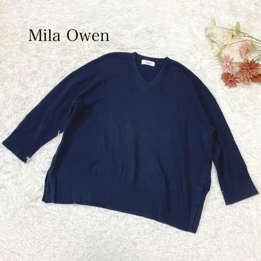 s.2462 [밀라오웬] 긴팔 V넥 니트 얇은 소재 심플 네이비