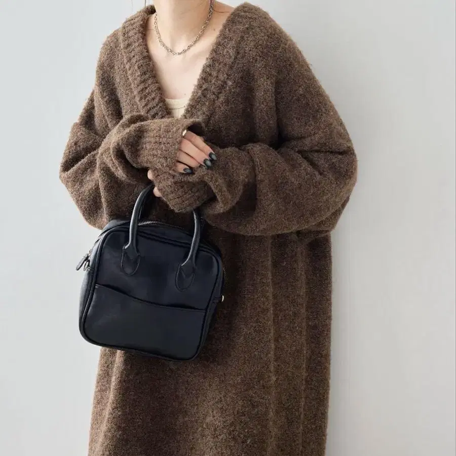 • 이에나 니트 원피스 롱 원피스 긴팔 브라운 V넥 가을/겨울