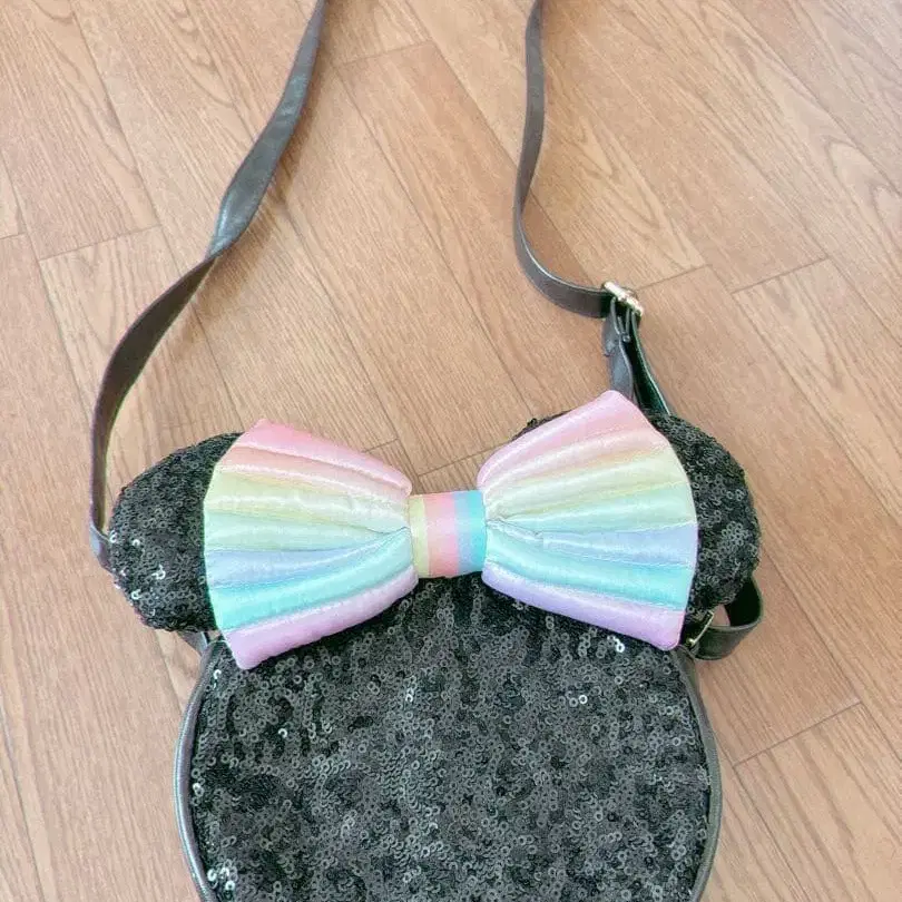 미키 모양 라메 백 레인보우 컬러 리본 포함