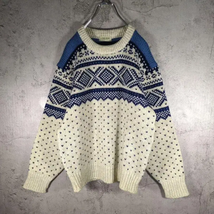 • [ 울 100% 인기 ] 노르딕 무늬 올 패턴 빈티지 니트 XL