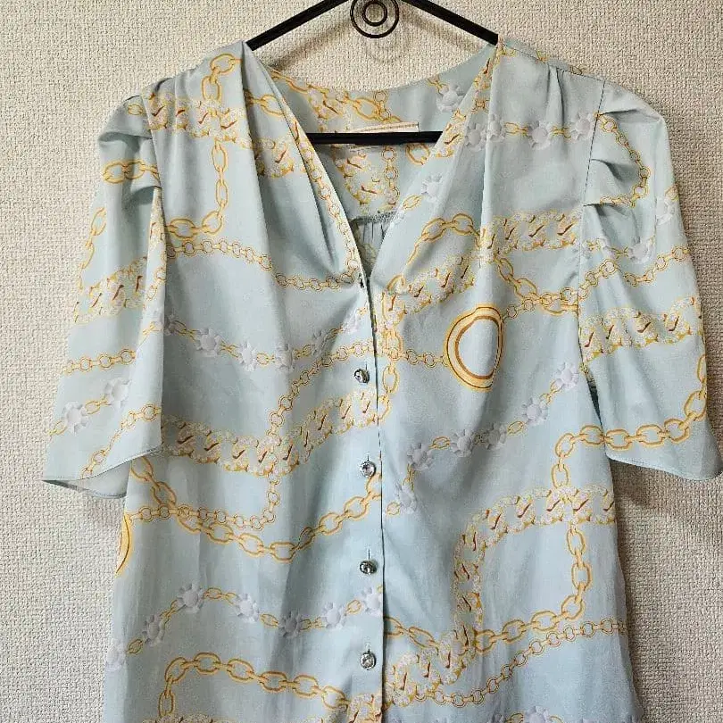 스카이블루 체인 패턴 반팔 셔츠