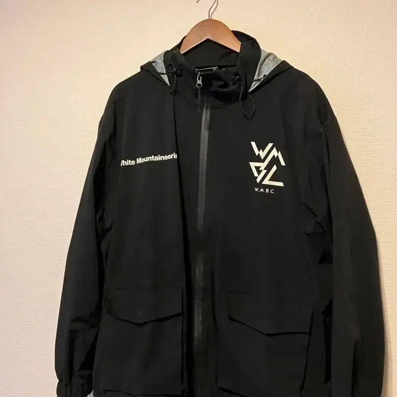 화이트 마운티니어링 후드 부착 나일론 후드티 블랙