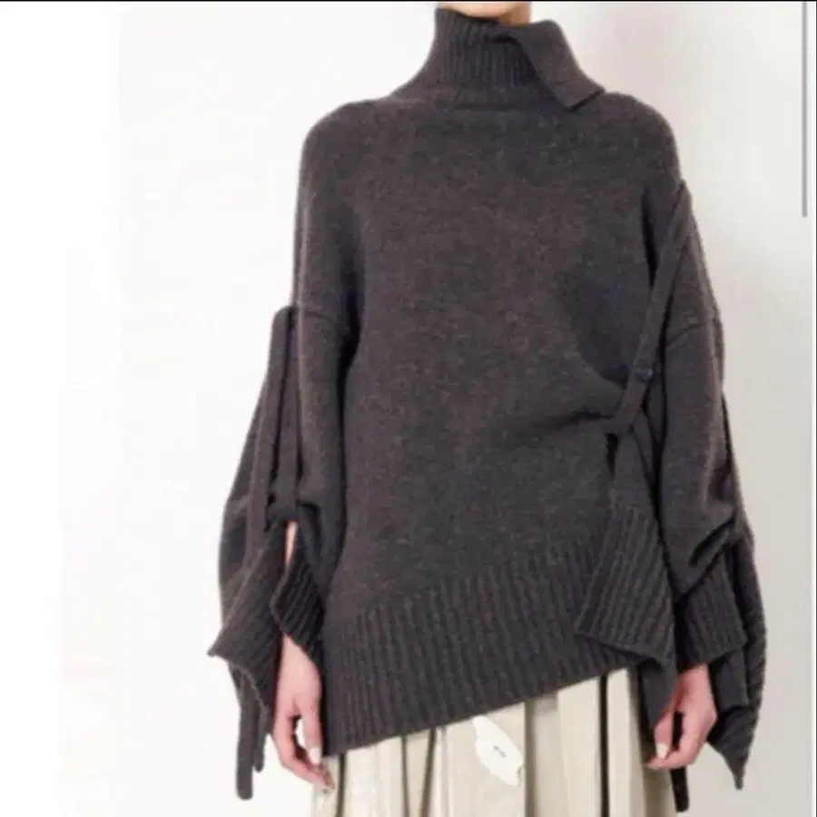 IRENE 그레이 터틀넥 니트 36 오버 사이즈 버튼