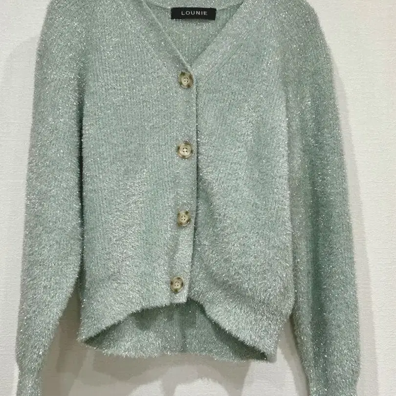 보송보송한 촉감에 반짝이는 라메 믹스로 화려하고 귀여운 가디건입니다.