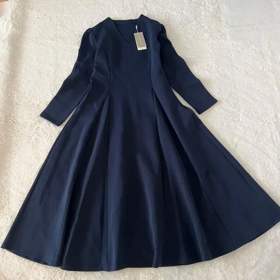 심플하면서도 화려함. 허리 쉐이프가 여성스러운 인상을 주는 세존드파피용 V넥 플레어 원피스.