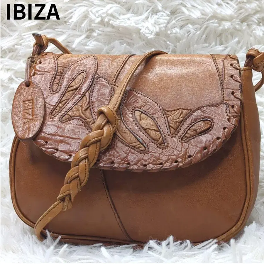 IBIZA 이비자 백 숄더백 크로스바디 숄더 숄더 숄더 사선 가죽 천연 가죽 브라운 브라운 패치워크 로고 엠보 플랩