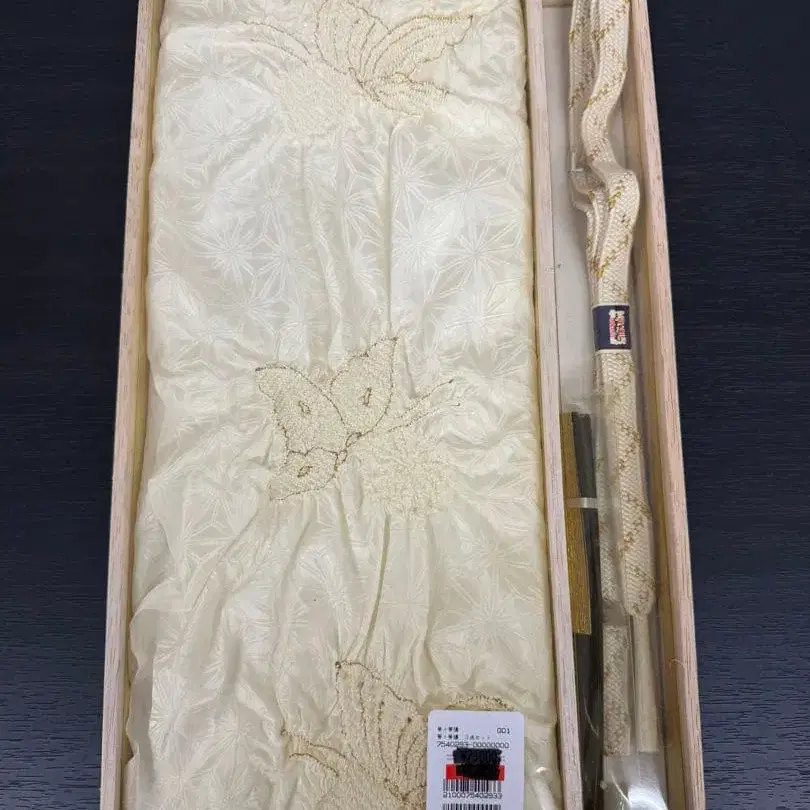 미사용 순수 실크 오비 장식 천 허리띠 목상자입 고급 일본 의류 세트
