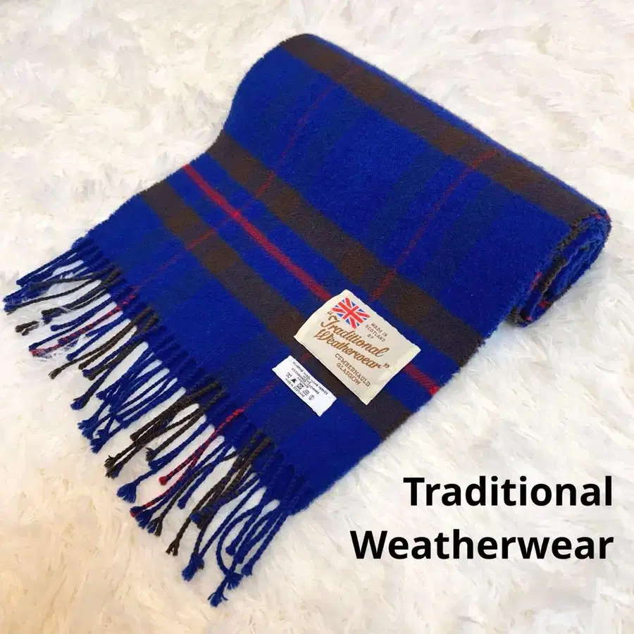 트래디셔널 웨더 머플러 울 캐시미어 혼방 블루 체크 무늬