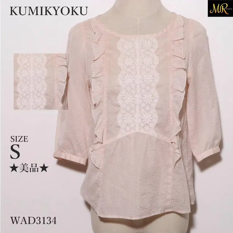 새상품급 쿠미교쿠 상의 블라우스 7부 소매 플라워 레이스 프릴 디자인