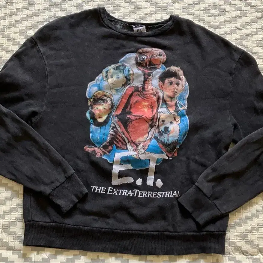 E.T. 캐릭터가 그려진 그래픽 프린트가 특징인 맨투맨. 영화 팬이라면 놓칠 수 없는 디자인입니다.