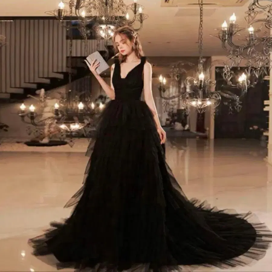 엘레강트 블랙 롱 드레스 M 사이즈 튤