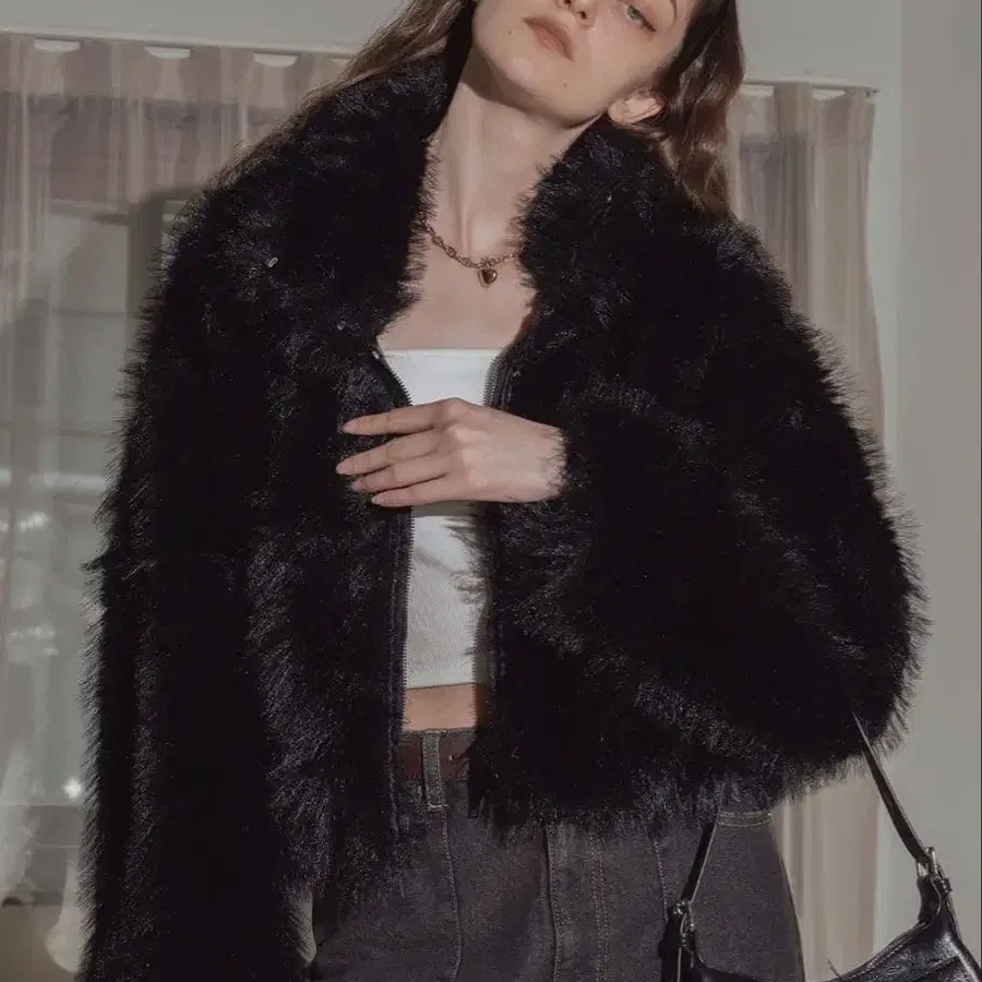 Mili affinity 인조 모피 숏 기장 더블 지퍼 자켓