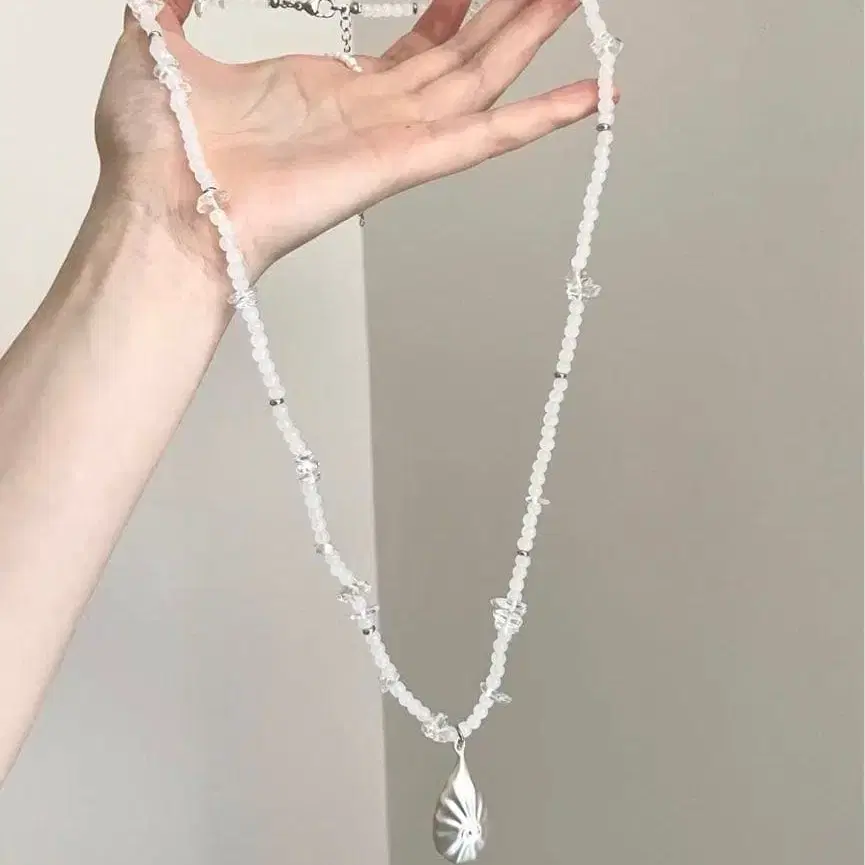 화이트 비즈 쉘 펜던트 목걸이