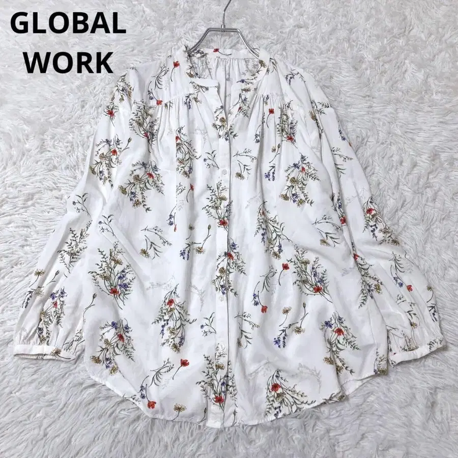 글로벌 워크 셔츠 블라우스 긴팔 상의 꽃무늬 고급 화이트