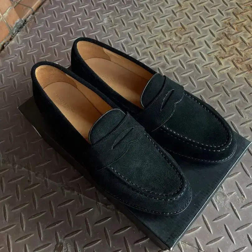 스웨이드 소재의 블랙 로퍼. 스타일리시하고 쾌적한 착용감. 캐주얼부터 비즈니스까지 대응 가능한 멋스러운 로퍼입니다.